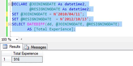 Find working days between two dates in SQL Server. DATE DIFF () considers only . The first integer represents the day and the second integer represents the time. Here we consider datetime functions in T - SQL.